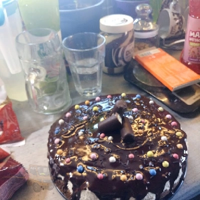 A 2 órán át pihent tortát kivesszük a tortaformából, majd gőz fölött a tábla étcsokit és a 100 ml habtejszínt összemelegítjük. Kevergessük, majd mikor sűrű masszává elegyedett, rácsurgatjuk a tortára. Gyorsan kell vele dolgozni, mert hamar megköt.