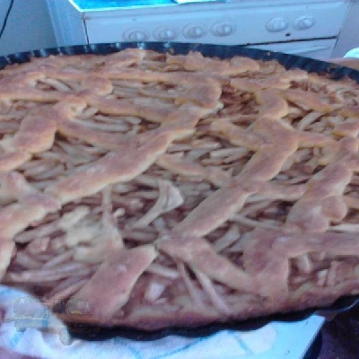 Egyengesd, nyomkodd szét benne a tészta kb. 3/4 részét, hogy kibélelje a formát, használtam egy kis barna rizslisztet a tészta keményítéséhez, tapadásmentesítéséhez. Kanalazd bele a kinyomkodott, lereszelt, ízesített almát és a maradék tésztából készíts rá rácsokat.