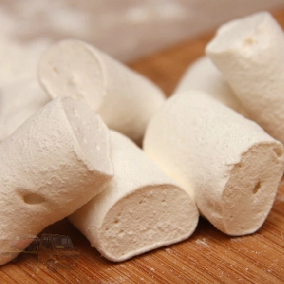 6,Kb. 1,5 óra lteltével ollóval feldaraboljuk a pillecukrot, és megforgatjuk őket keményítős-fruktózos keverékben