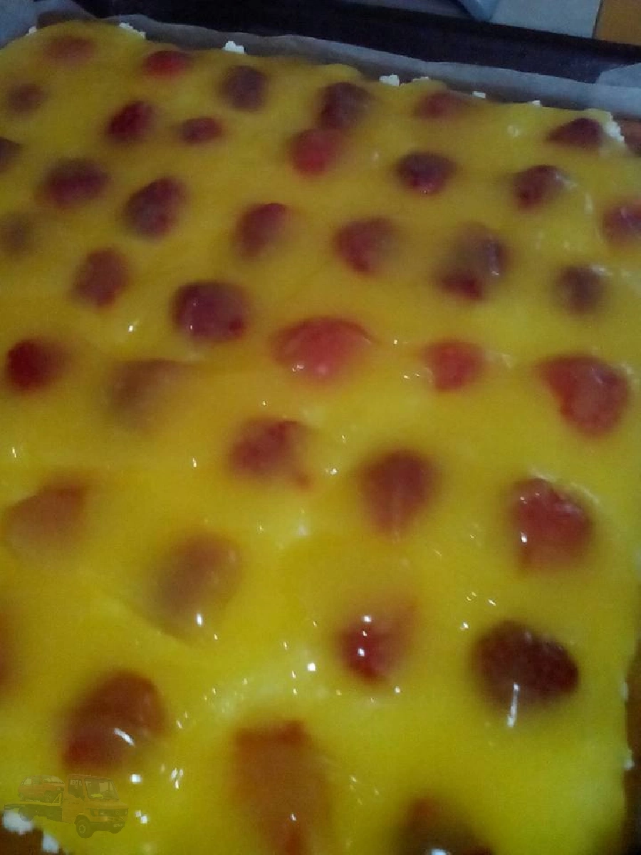 A kihűlt piskótára rákenjük a túrókrémet, esetleg valamilyen gyümölcsöt (a mellékelt képen nálam málna volt) majd rásimítjuk a fantás pudingot (ezt kicsit hűtjük, hogy ne legyen forró, de nem hűtjük ki teljesen nehogy megszilárduljon!)